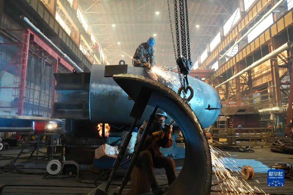 1月1日,在哈電集團哈爾濱電機廠(chǎng)有限責任公司生產(chǎn)車(chē)間,工人在作業(yè)。