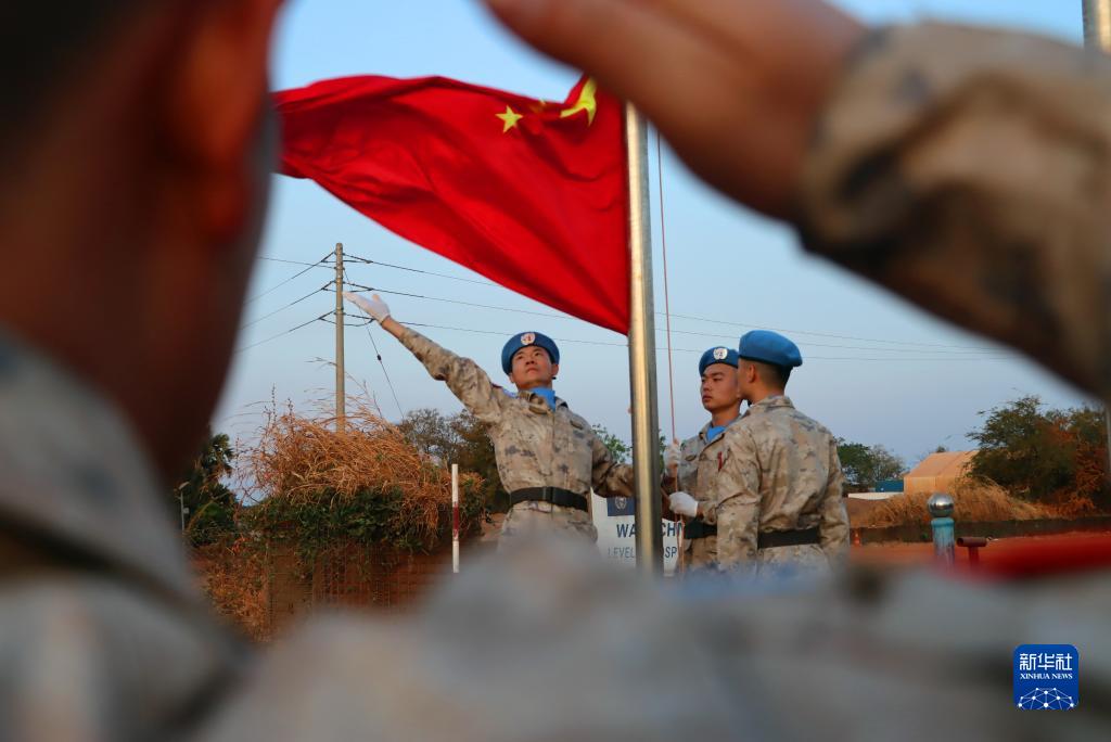 1月1日,中國第13批赴南蘇丹維和醫療分隊組織升國旗儀式。