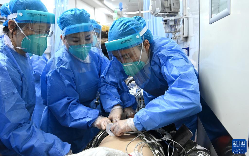 2022年12月31日,西安交通大學(xué)第一附屬醫院急診科的醫務(wù)人員為患者進(jìn)行心電圖檢查。
