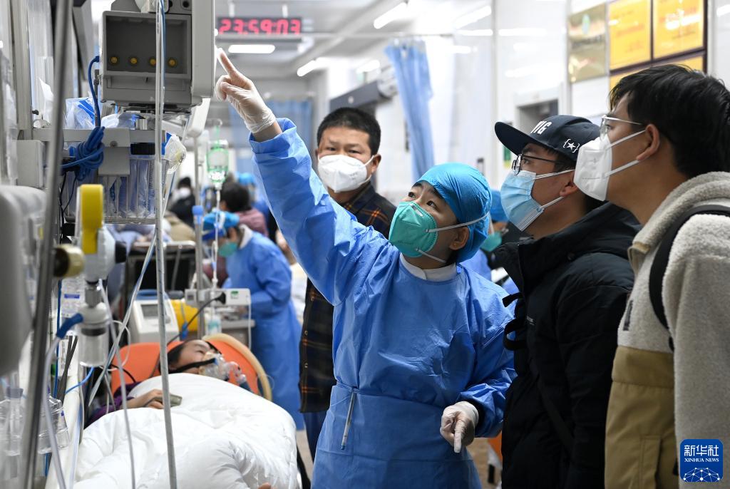 2022年12月31日,西安交通大學(xué)第一附屬醫院急診科的醫務(wù)人員向患者家屬介紹情況。