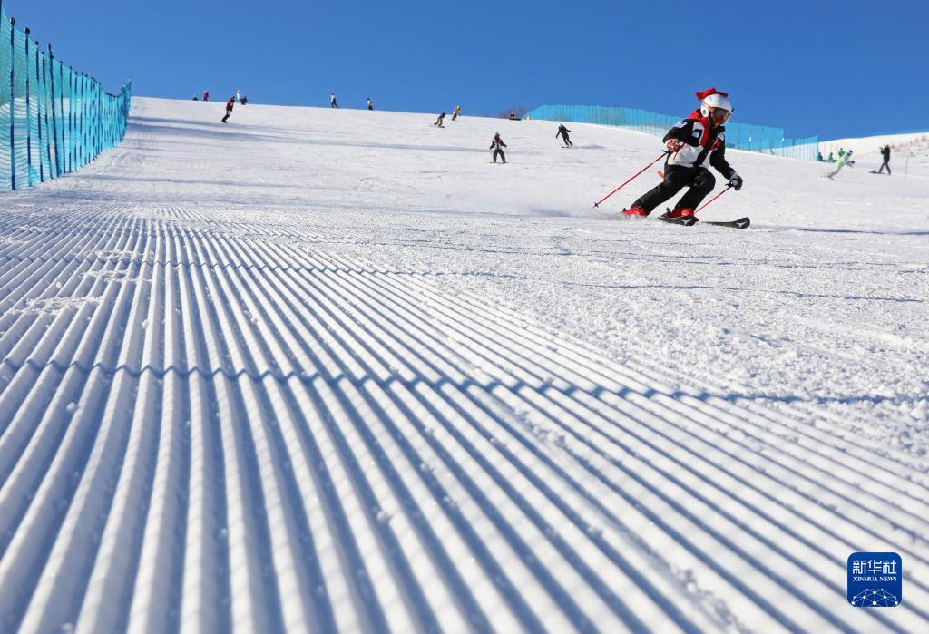 1月1日,滑雪愛(ài)好者在河北省張家口市崇禮區云頂滑雪公園滑雪。