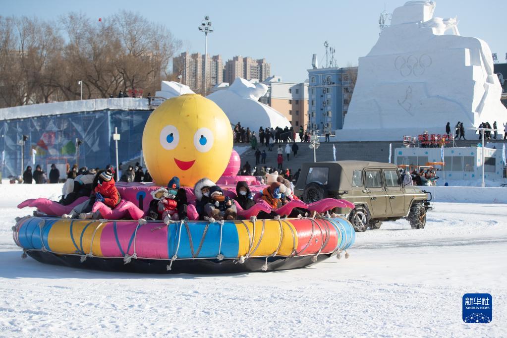1月1日,游客在黑龍江省哈爾濱松花江冰雪嘉年華園區游玩。