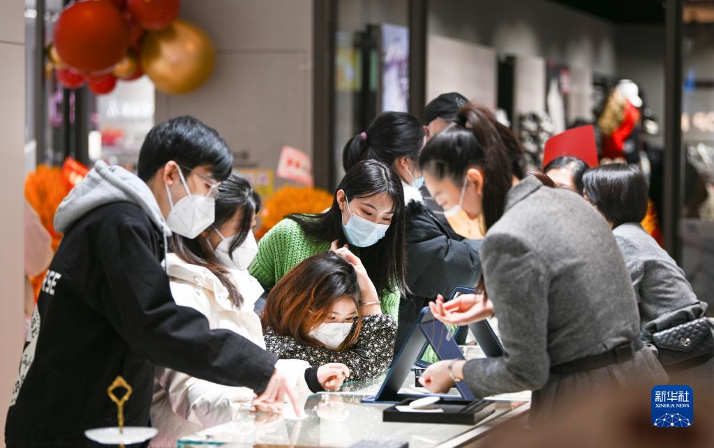 1月1日,消費者在天津金茂匯商場(chǎng)內選購商品。