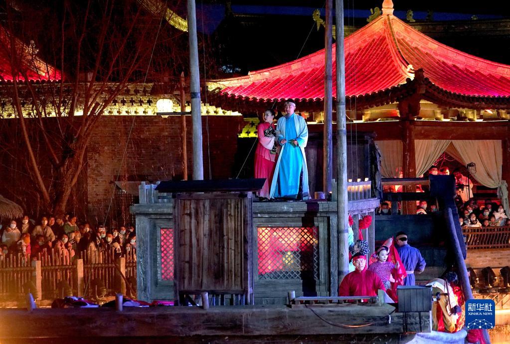 2022年12月31日,游客在位于鄭州市中牟縣的電影小鎮里觀(guān)看表演。