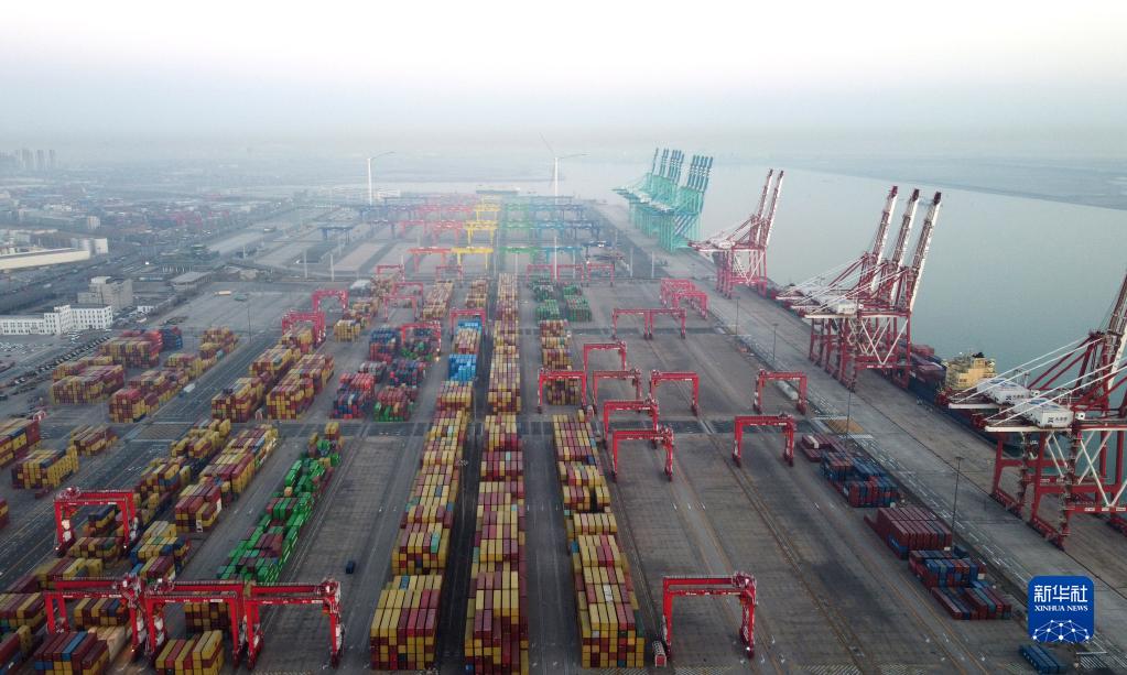 這是1月1日拍攝的天津港集裝箱碼頭(無(wú)人機照片)。