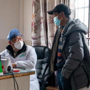 2022年12月30日,云南省昭通市鎮雄縣潑機鎮亨地村村醫陳波在接診。