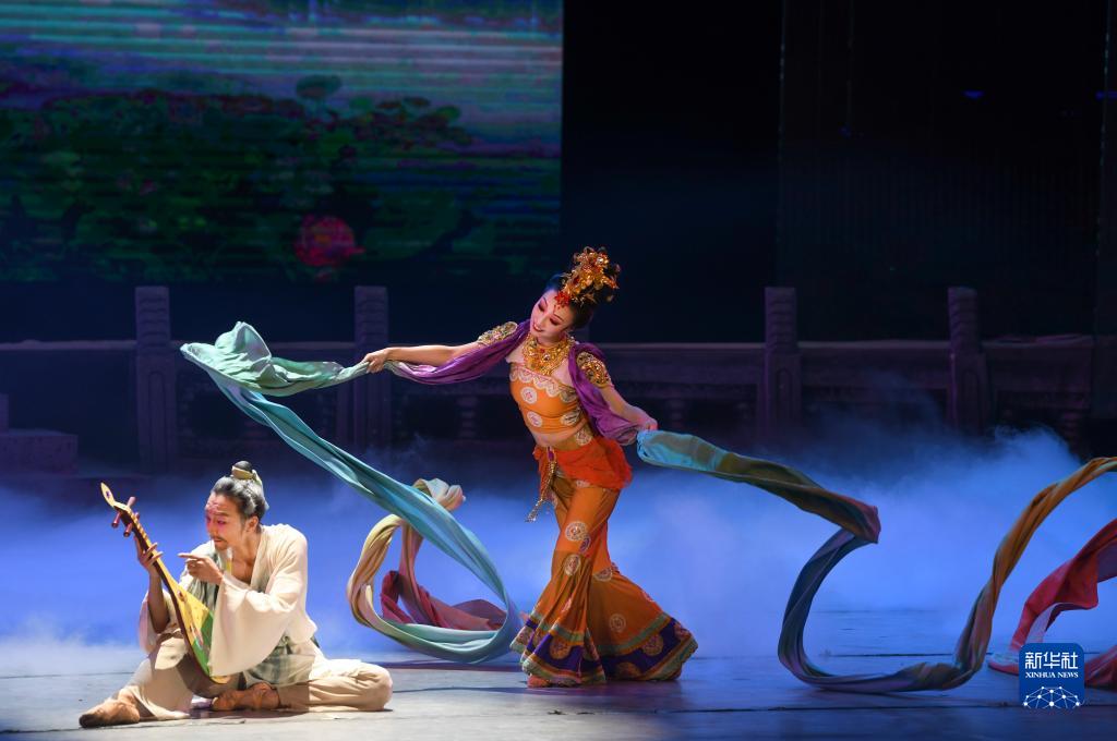 《絲路花雨》由甘肅省歌舞劇院創(chuàng )排,取材于敦煌壁畫(huà)藝術(shù),博采各地民間歌舞之長(cháng),展現了唐朝對外經(jīng)濟、文化交往頻繁的盛況。
