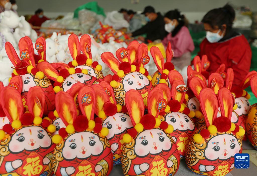 1月3日,在山東省臨沂市沂南縣一家玩具企業(yè),工人在加工“萌兔”玩具。