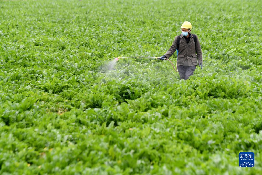 1月3日,農民在貴州省黔東南苗族侗族自治州榕江縣車(chē)江壩區蔬菜基地噴施葉面肥。