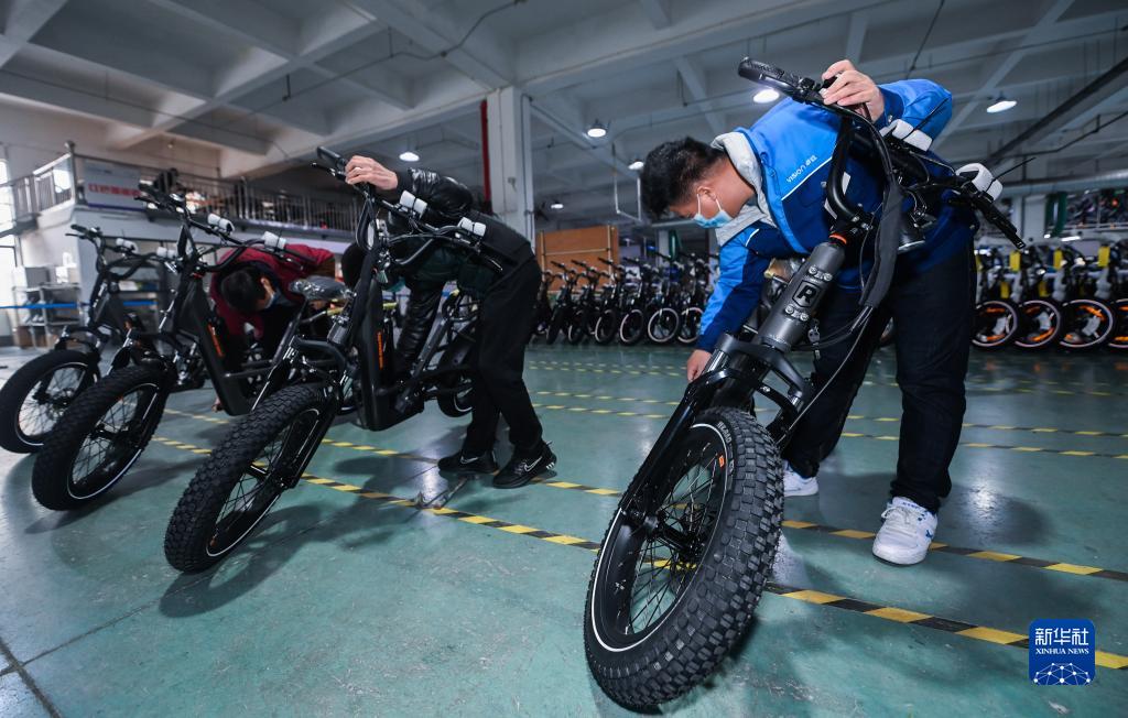 1月3日,工人在金華卓遠實(shí)業(yè)有限公司的車(chē)間內檢驗一批出口的助力電動(dòng)自行車(chē)。這是一家專(zhuān)業(yè)從事助力電動(dòng)自行車(chē)、電動(dòng)滑板車(chē)、電機、鋁合金車(chē)架及配件的研發(fā)、制造、銷(xiāo)售于一體的外貿企業(yè)。