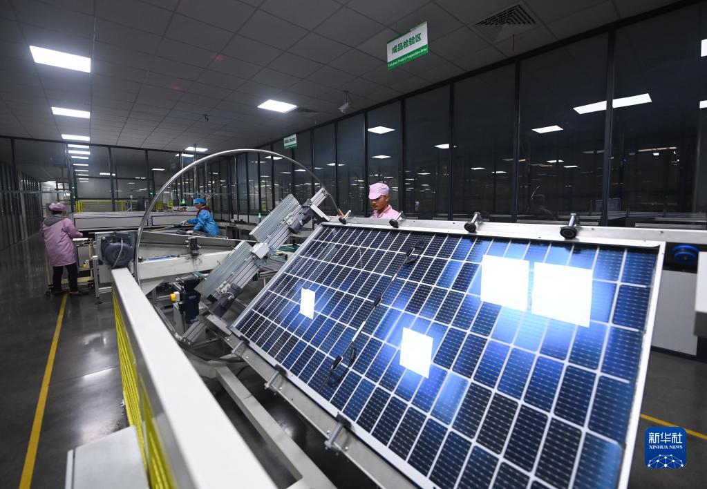 1月3日,工人在浙江格普光能科技有限公司的車(chē)間內檢驗光伏組件成品。