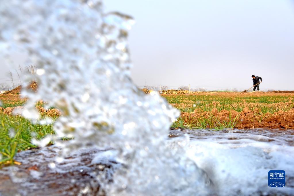 1月4日,山東省棗莊市山亭區桑村鎮任莊村農民在灌溉小麥。