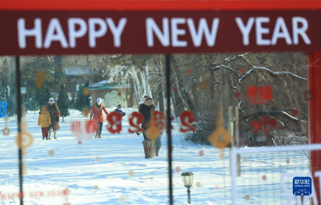 1月3日,游客在沈陽(yáng)世博園內游玩。