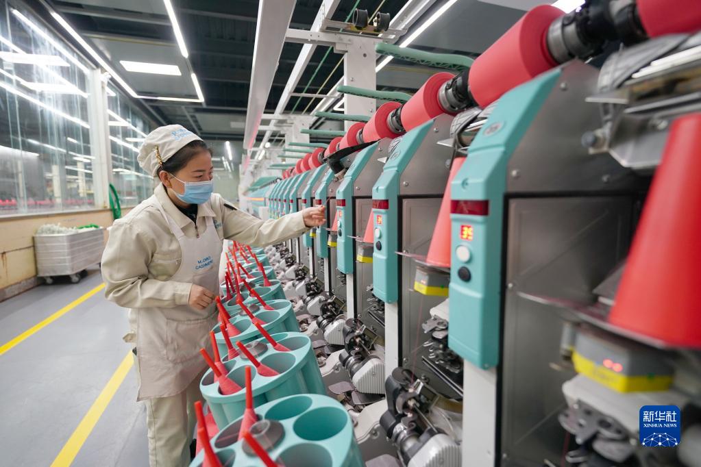 1月4日,河北南冠科技有限公司工人在生產(chǎn)羊絨紗線(xiàn)。