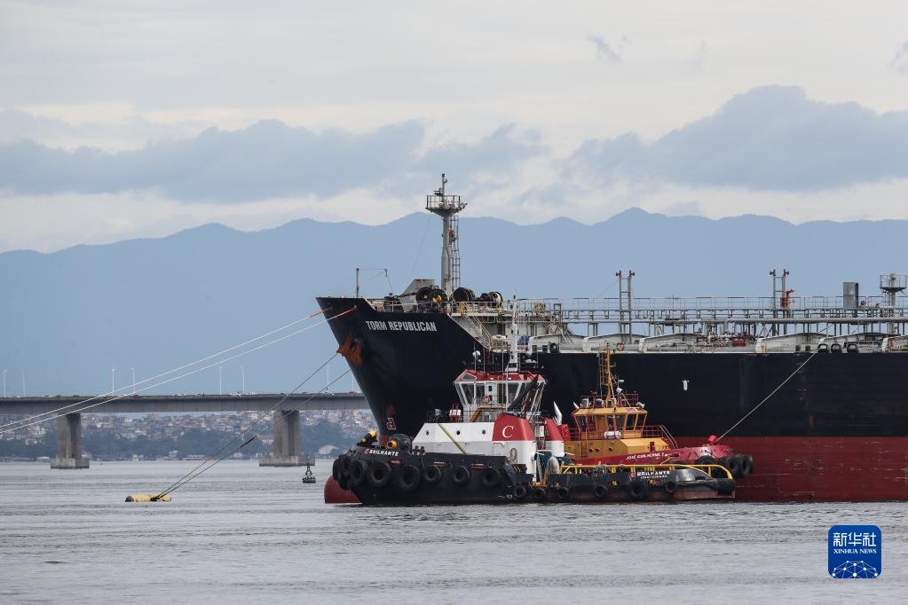 這是1月4日在巴西里約熱內盧瓜納巴拉灣拍攝的一艘集裝箱貨輪。