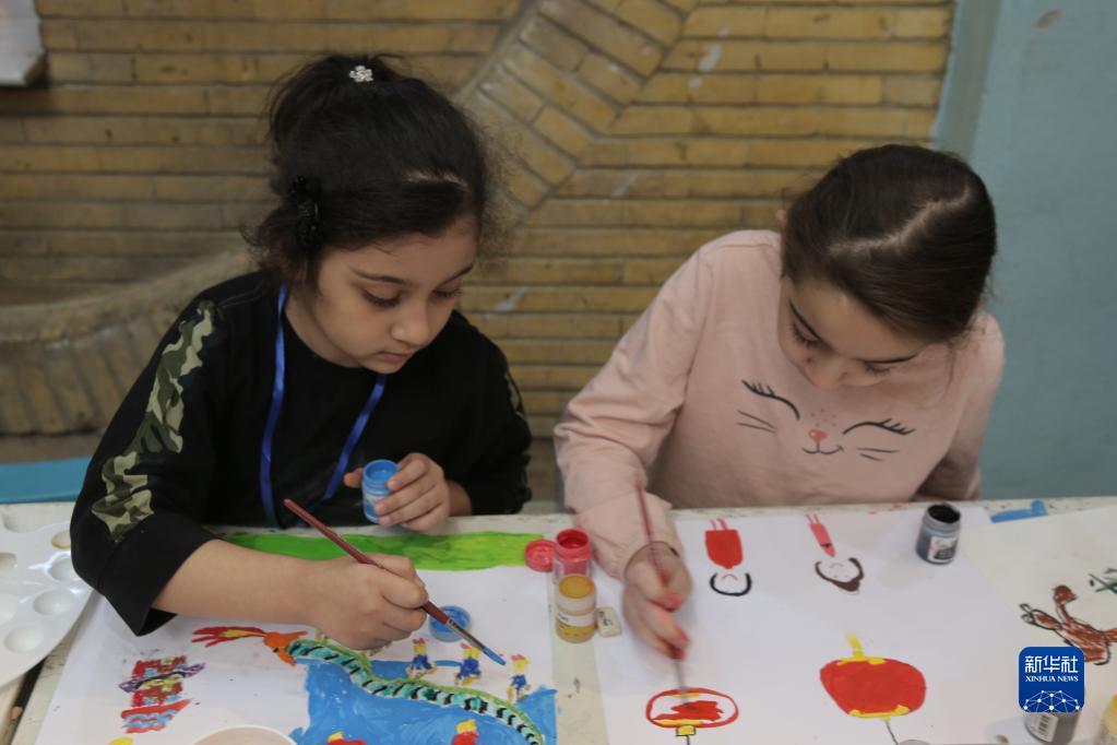 1月4日,在伊朗首都德黑蘭舉行的首屆“印象中國——伊朗青少年繪畫(huà)比賽”作品展上,兩名兒童在作畫(huà)。