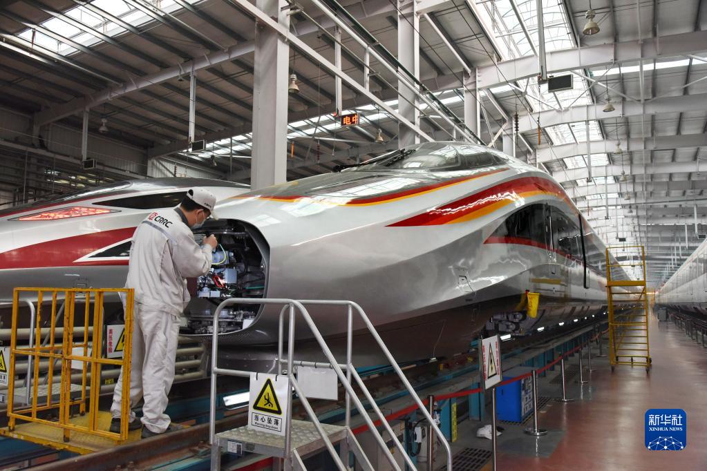 1月4日,一名技術(shù)人員在查看“復興號”智能動(dòng)車(chē)組。