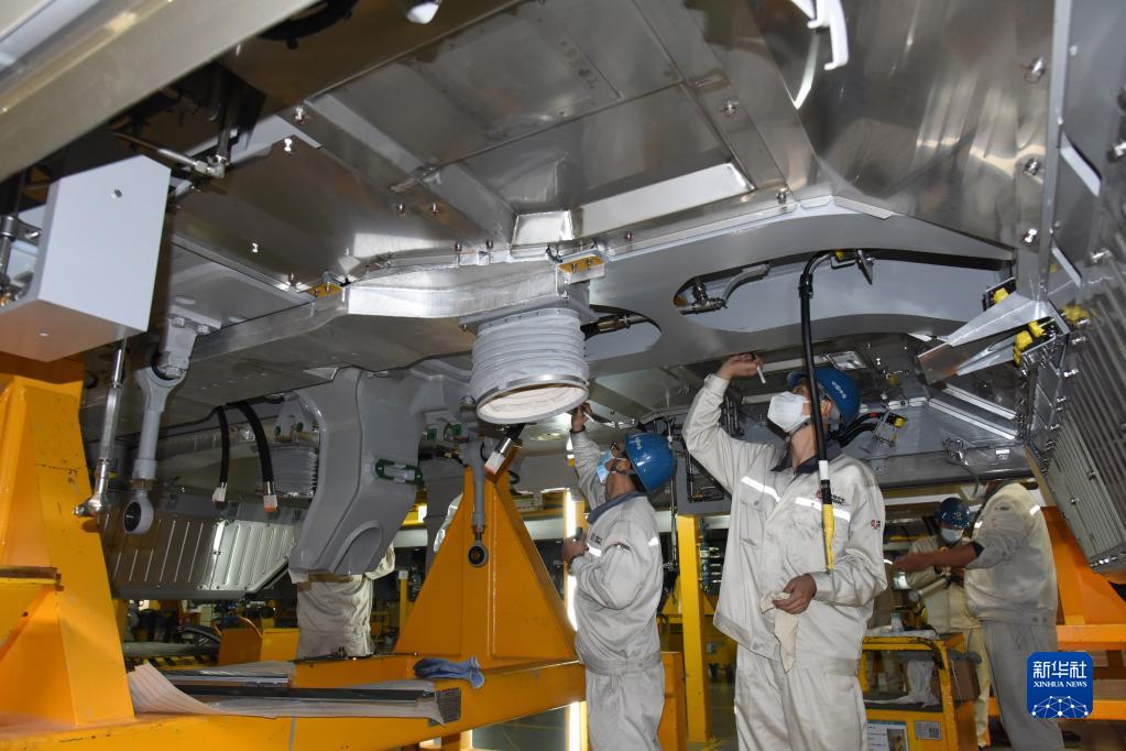 1月4日,總裝車(chē)間技術(shù)人員在“復興號”智能動(dòng)車(chē)組生產(chǎn)線(xiàn)上忙碌。
