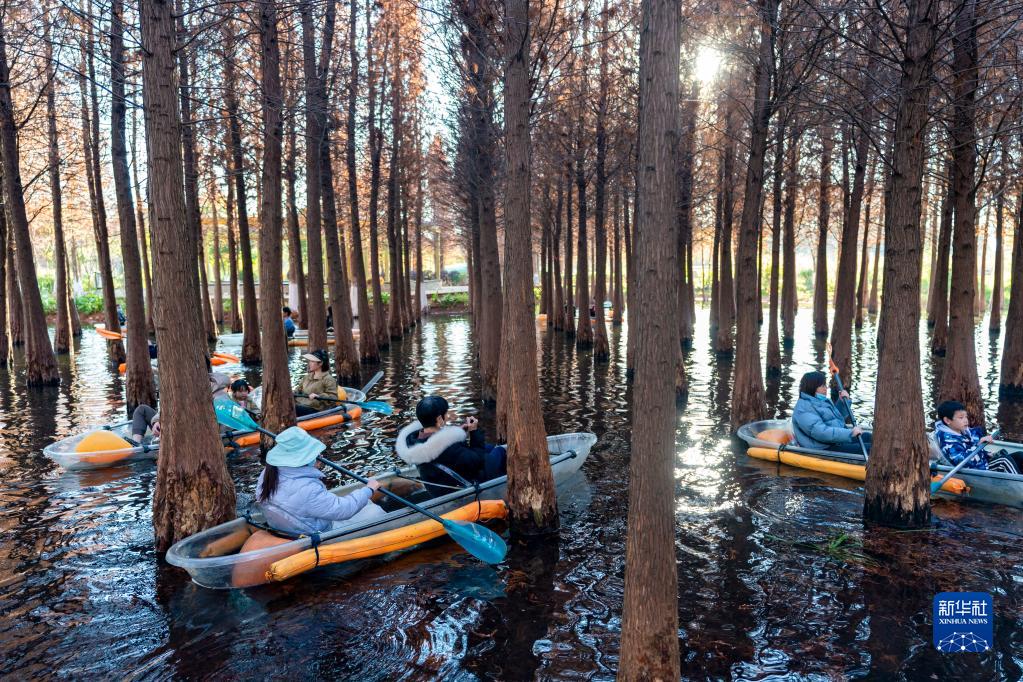 近期,云南省昆明市海洪濕地公園的水杉迎來(lái)觀(guān)賞季,吸引不少游客前來(lái)游覽。昆明海洪濕地公園位于滇池北岸、盤(pán)龍江入湖口西側,是滇池的一道湖濱生態(tài)屏障。