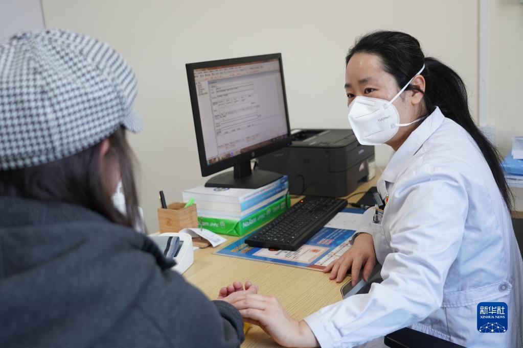 1月4日,太陽(yáng)宮社區衛生服務(wù)中心醫生司玲在為一位患者把脈。