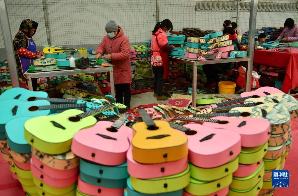 1月5日,工人在夏邑縣太平鎮劉花園村一生產(chǎn)車(chē)間加工吉他。