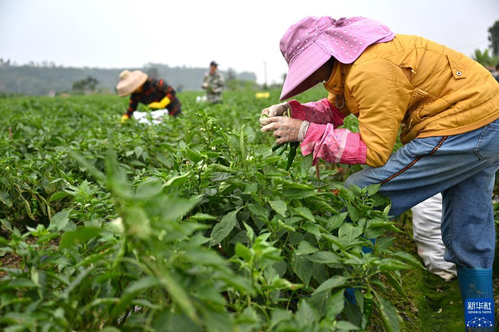 1月5日,在海南省澄邁縣金安農場(chǎng),農民在采摘辣椒。
