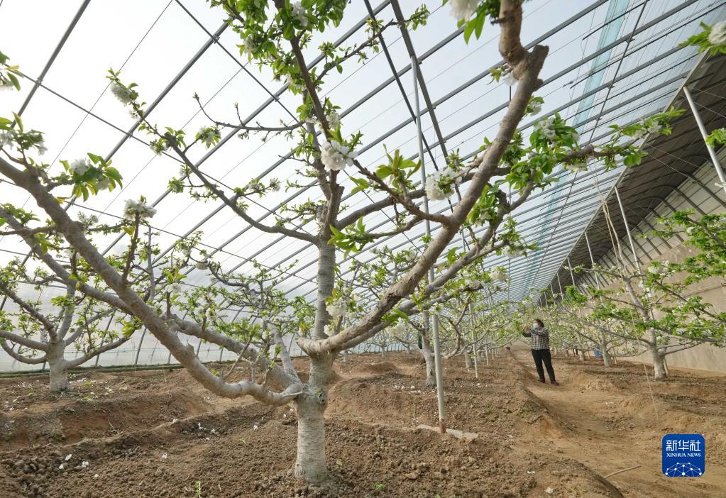 1月6日,在秦皇島市海港區海陽(yáng)鎮一家櫻桃種植合作社,農民在大棚內給櫻桃樹(shù)疏花。