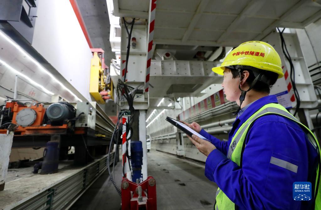 1月6日,在中鐵隧道局上海市域鐵路機場(chǎng)聯(lián)絡(luò )線(xiàn)11標項目施工現場(chǎng),技術(shù)人員使用平板電腦操作中隔墻拼裝機器人施工作業(yè)。