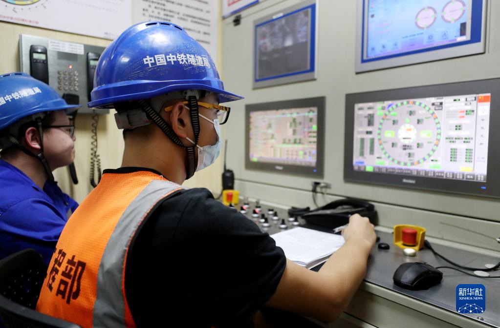 1月6日,在中鐵隧道局上海市域鐵路機場(chǎng)聯(lián)絡(luò )線(xiàn)11標項目施工現場(chǎng),技術(shù)人員在虹浦號盾構機主機室內監測設備運行情況。