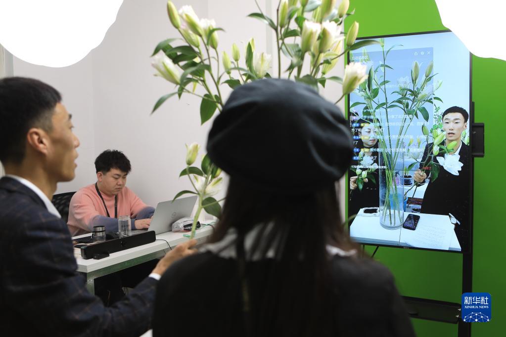 1月5日,在凌源市一家文化傳媒公司,工作人員用網(wǎng)絡(luò )直播的方式推介凌源百合。