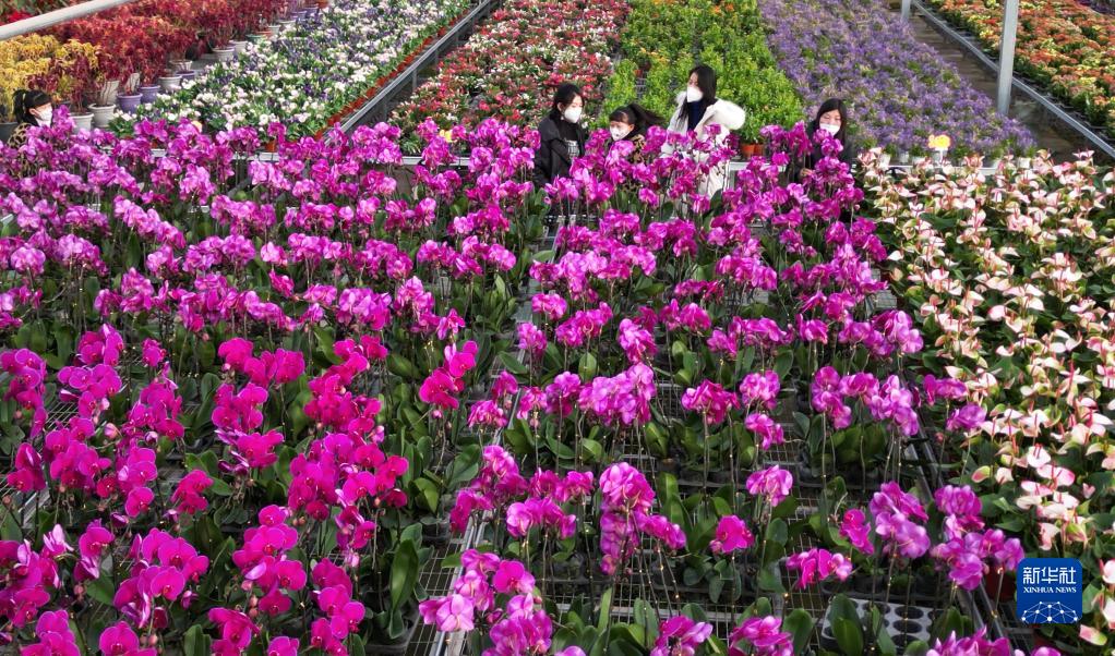 春節臨近,甘肅省臨夏回族自治州鮮花市場(chǎng)迎來(lái)銷(xiāo)售旺季,人們選購年宵花卉,迎接新春佳節的到來(lái)。