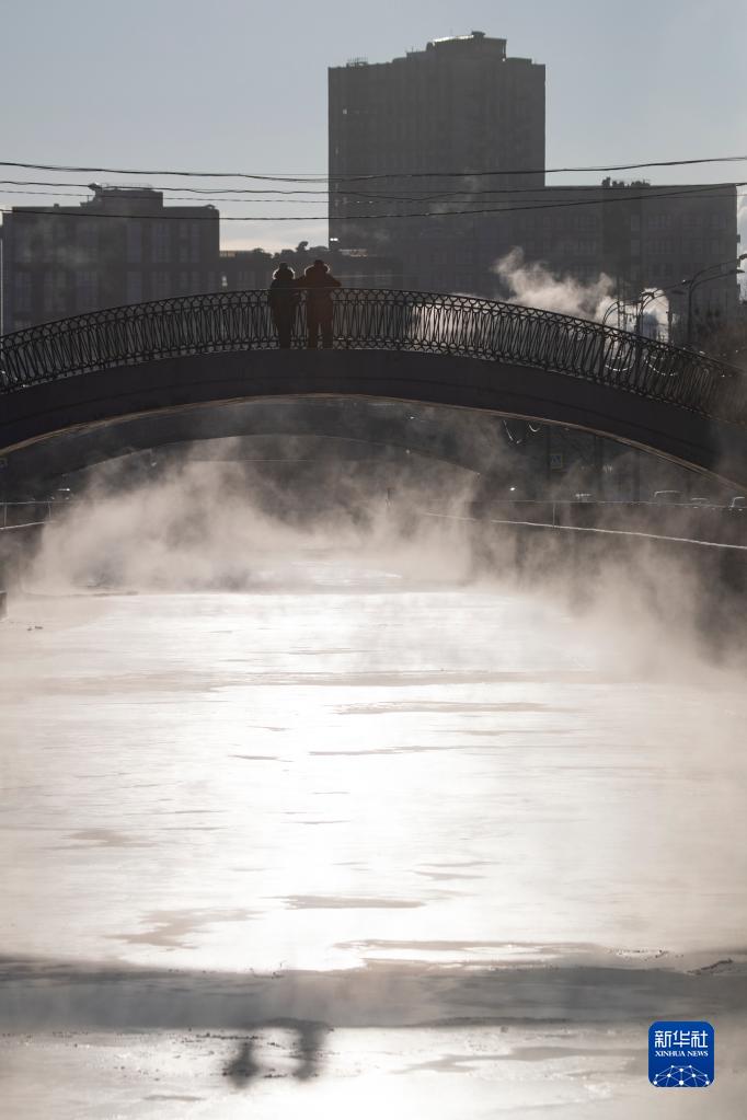 1月6日,在俄羅斯首都莫斯科,行人站在橋上眺望。