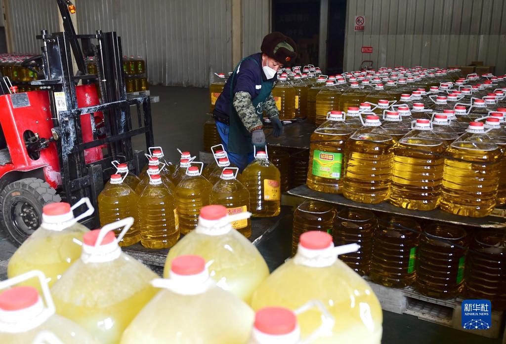 1月6日,在滄州市一家糧油企業(yè)存儲區,工人在搬運食用油。