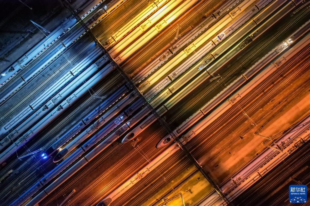1月7日,2023年春運啟動(dòng)。1月6日晚,在中國鐵路成都局集團有限公司貴陽(yáng)北動(dòng)車(chē)所,??吭诖孳?chē)線(xiàn)上的動(dòng)車(chē)排列整齊如同一支“陸地艦隊”。