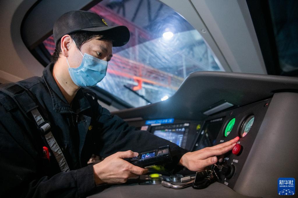 1月6日,地勤機械師在測試動(dòng)車(chē)組列車(chē)司機室設備。