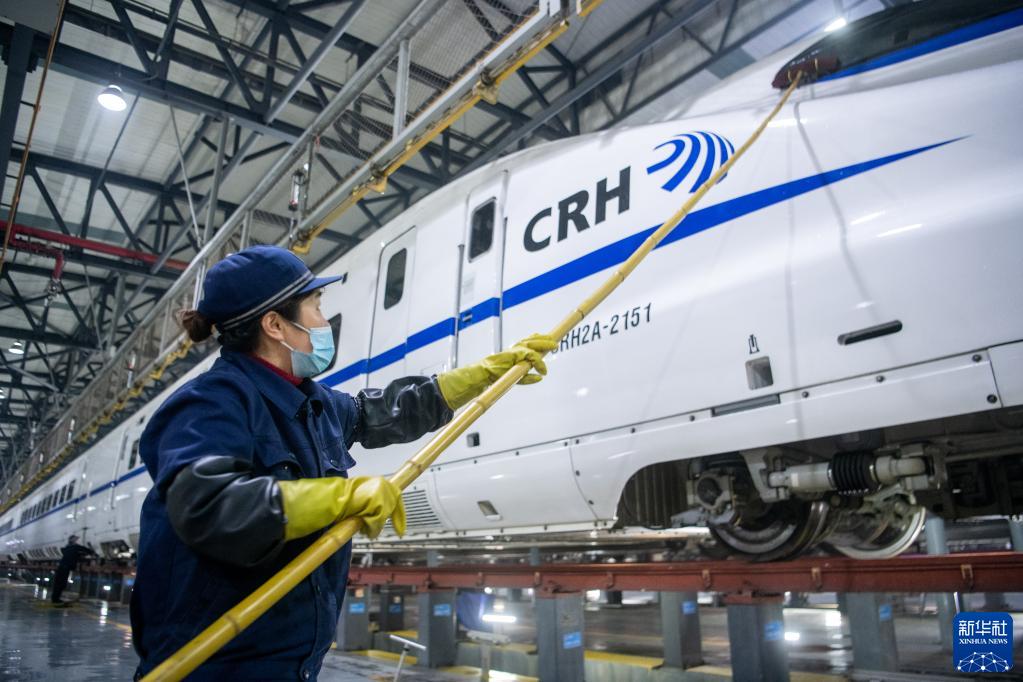 1月6日,保潔人員在清洗動(dòng)車(chē)組。