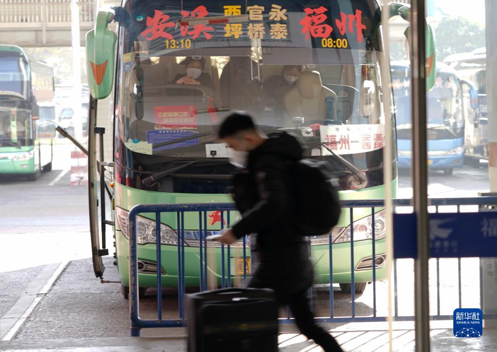 1月7日,在福建福州汽車(chē)北站,旅客準備登車(chē)。