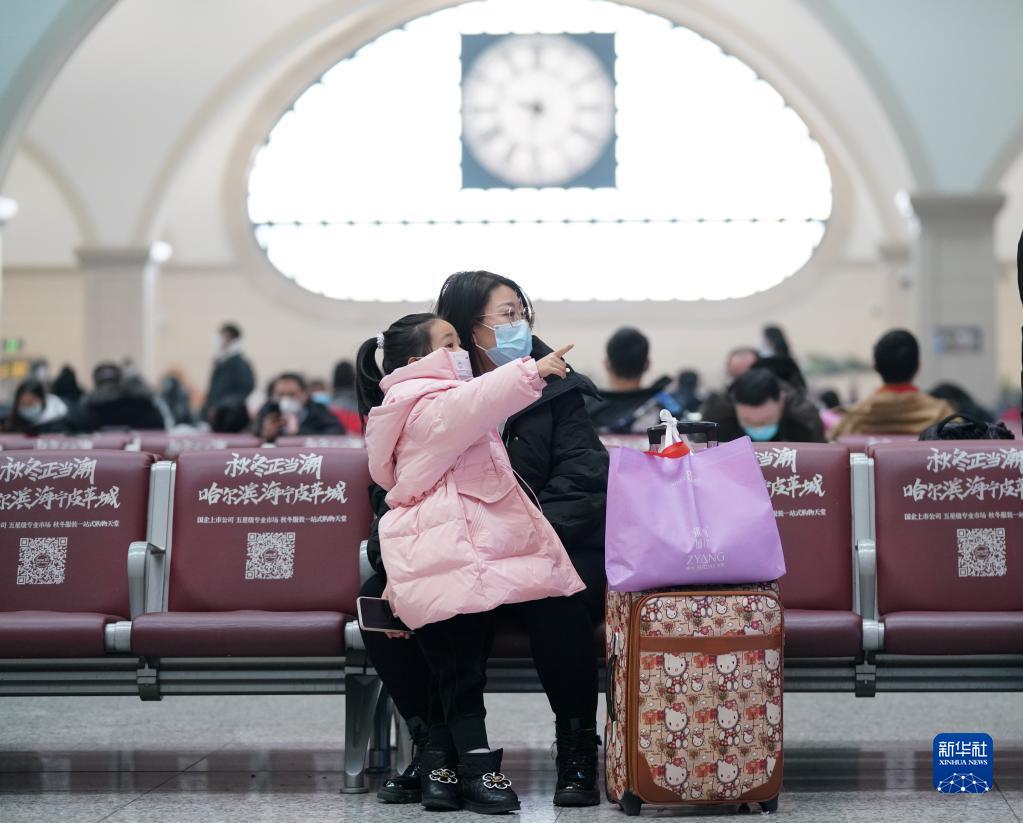 1月7日,旅客在哈爾濱火車(chē)站候車(chē)大廳候車(chē)。