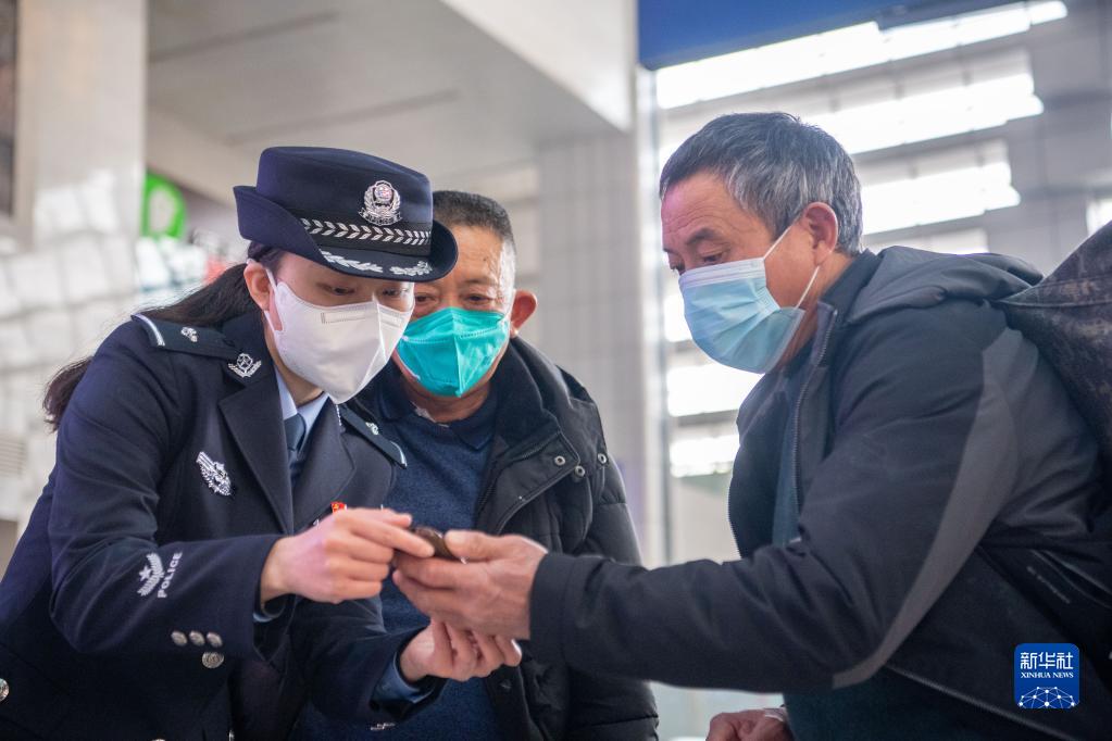 1月7日,在重慶北站候車(chē)廳,鐵路警察在解答旅客疑問(wèn),指引乘車(chē)。