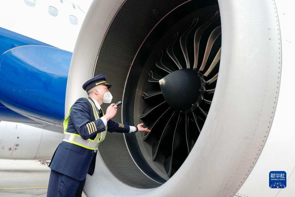 1月6日,重慶江北國際機場(chǎng)的停機坪上,機長(cháng)菅士博對客機進(jìn)行起飛前的繞機檢查。
