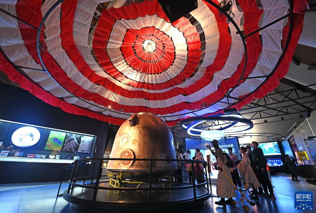 1月7日,觀(guān)眾在國家海洋博物館參觀(guān)“探索·星辰大海──航天科技主題成果巡回展”。