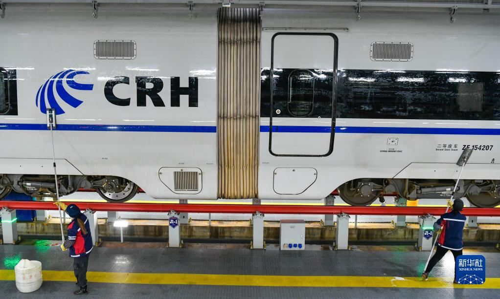 2023年春運于1月7日啟動(dòng)。中國鐵路成都局集團有限公司貴陽(yáng)車(chē)輛段貴陽(yáng)北動(dòng)車(chē)運用所的工作人員對動(dòng)車(chē)組列車(chē)進(jìn)行檢修、保養、清潔,確保春運期間列車(chē)運行安全和旅客乘車(chē)環(huán)境舒適。
