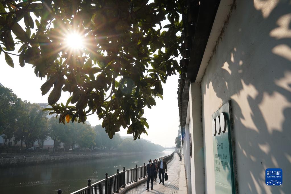 1月6日,市民在蘇州市姑蘇區二郎巷健身步道散步。