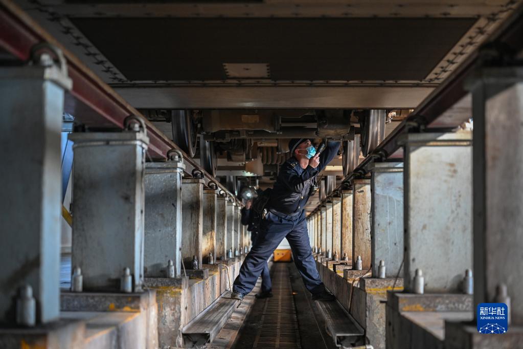 春運期間,在中國鐵路南昌局集團有限公司福州車(chē)輛段和動(dòng)車(chē)段內,工作人員對綠皮火車(chē)、高鐵動(dòng)車(chē)等多種車(chē)型進(jìn)行檢修、維護?!盎疖?chē)醫生”對列車(chē)進(jìn)行全方位排障,確保春運期間列車(chē)運行安全。