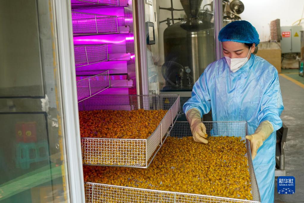 1月7日,在重慶市北碚區靜觀(guān)鎮一家農業(yè)專(zhuān)業(yè)合作社,工作人員在查看臘梅干花。