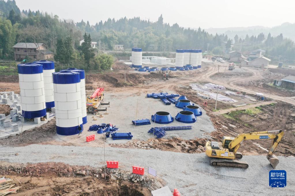這是1月8日在重慶市大足區境內拍攝的成渝中線(xiàn)高鐵建設施工現場(chǎng)(無(wú)人機照片)。