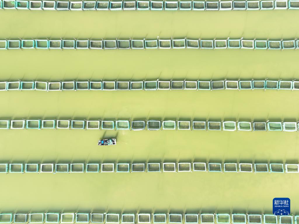 1月8日,在泗洪縣臨淮鎮螃蟹養殖基地,養殖戶(hù)在捕撈螃蟹(無(wú)人機照片)。