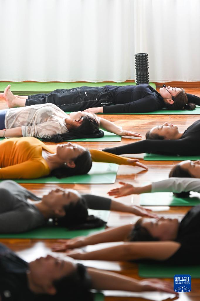 1月8日,人們在西烏珠穆沁旗的一家瑜伽館練習瑜伽。