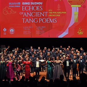 “唐詩(shī)的回響”新春音樂(lè )會(huì )7日晚在美國紐約林肯中心舉行。中國常駐聯(lián)合國代表張軍、第77屆聯(lián)大主席克勒希、中國駐紐約總領(lǐng)事黃屏、聯(lián)合國高級官員、近40個(gè)國家常駐聯(lián)合國使節以及紐約各界人士約700人觀(guān)看了演出。新華社記者 李睿 攝