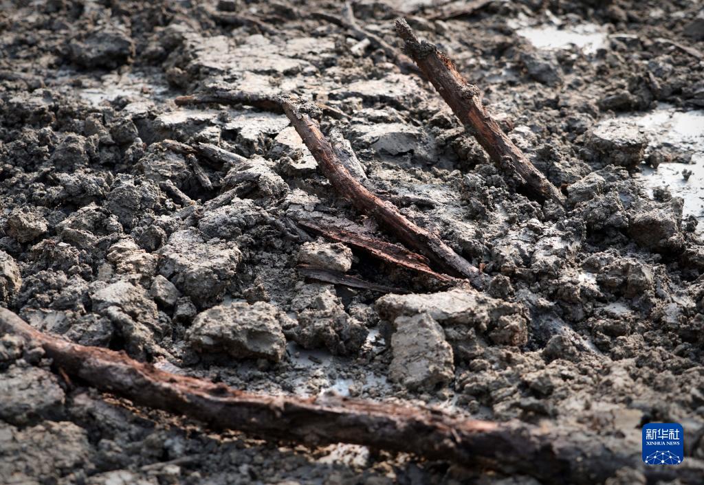 這是在河南商丘宋國故城遺址發(fā)掘現場(chǎng)拍攝的宋代柏木堆積(1月6日攝)。